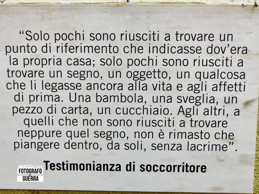 Cosa ci rimane impresso nella memoria di questo fatto devastante che ha distrutto gli affetti di quanti ne sono sopravvissuti e ha tolto la vita a quanti sono stati ghermiti dalla loro quotidianità senza colpa alcuna?